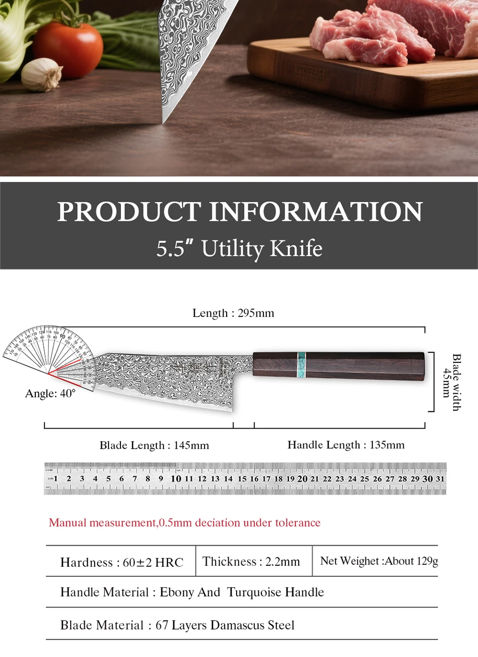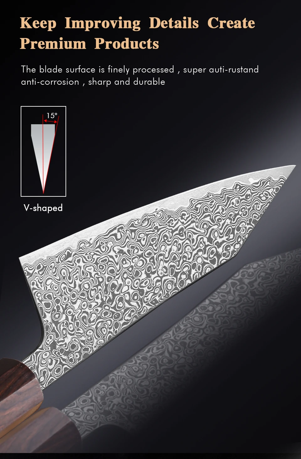 5.5-inch Japanese Bunka Chef Knife 67 Layer Damascus Steel Hand Forged Professional Utility Kitchen Knives Sharp Cooking Tools