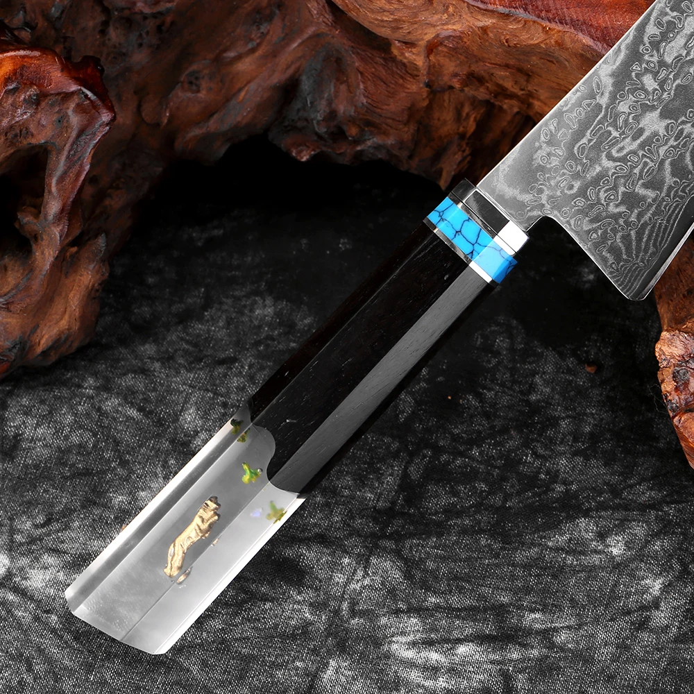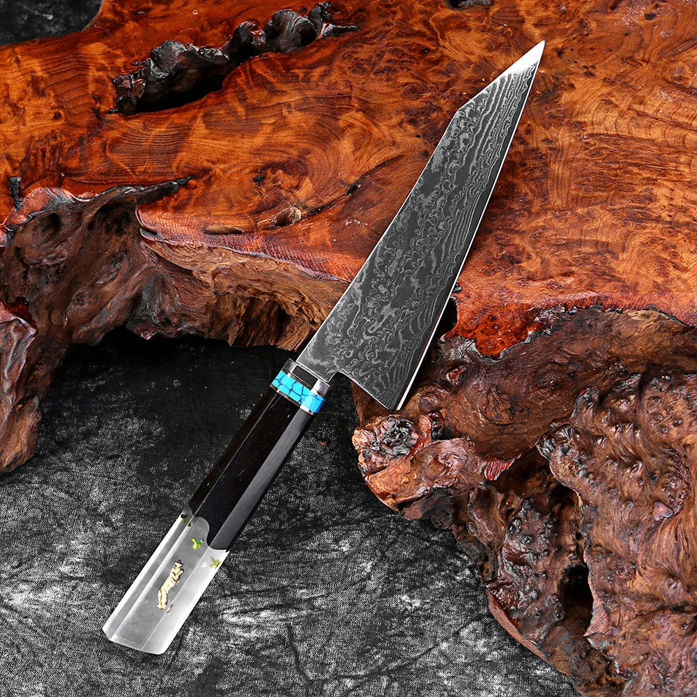 The eco-friendly Damascus steel blade ensures a sustainable choice without compromising on performance.