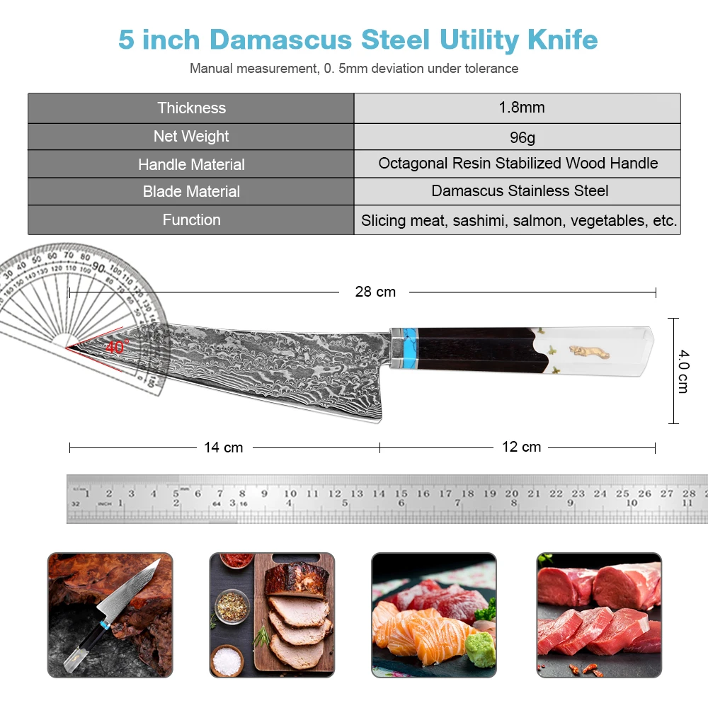 Chefswords Damascus 5 Inch Utility Knife Japanese Damascus Steel