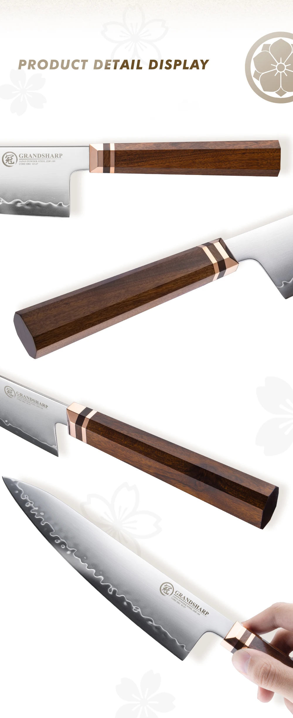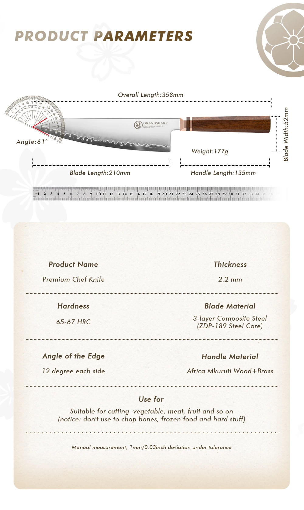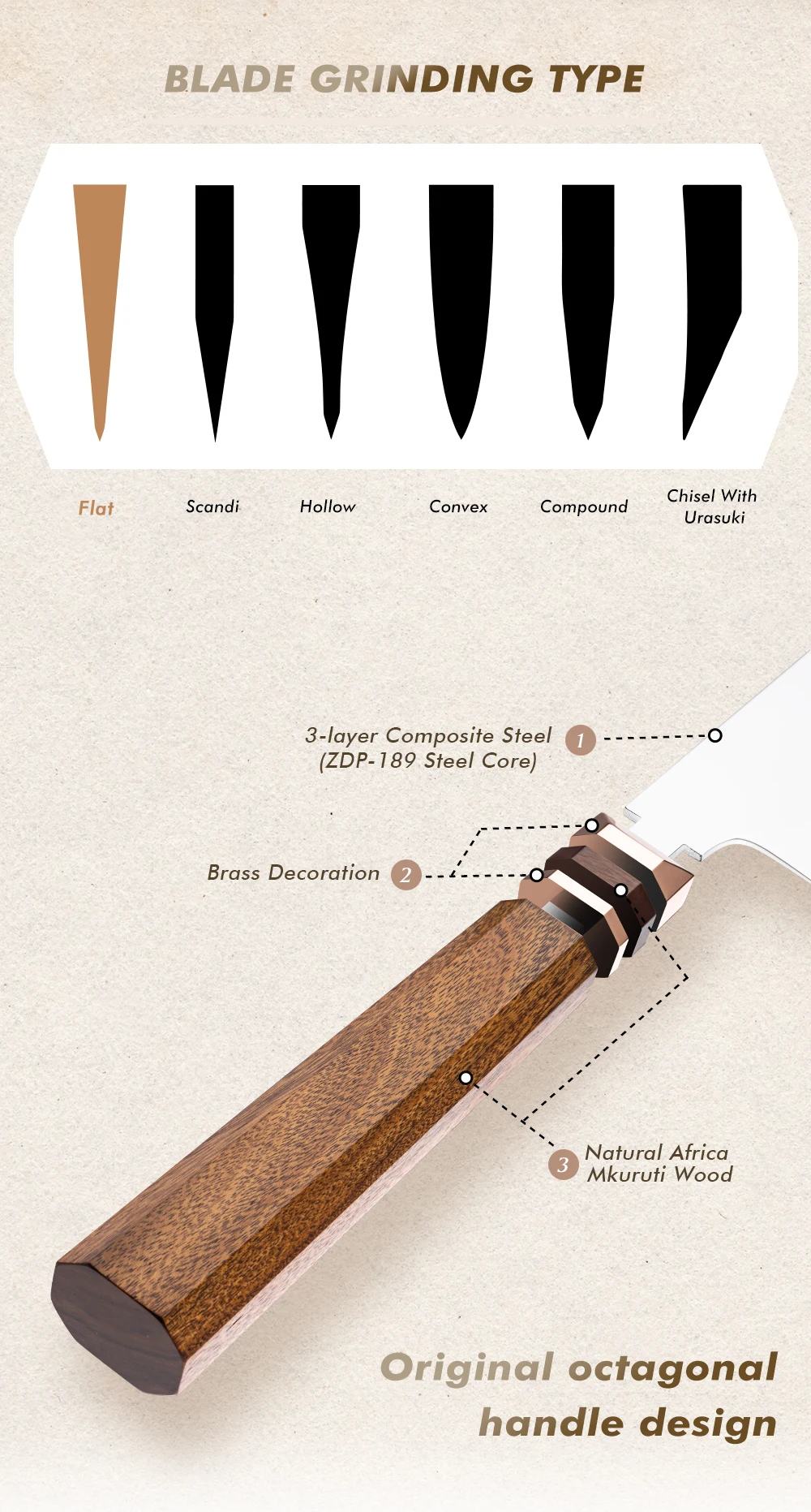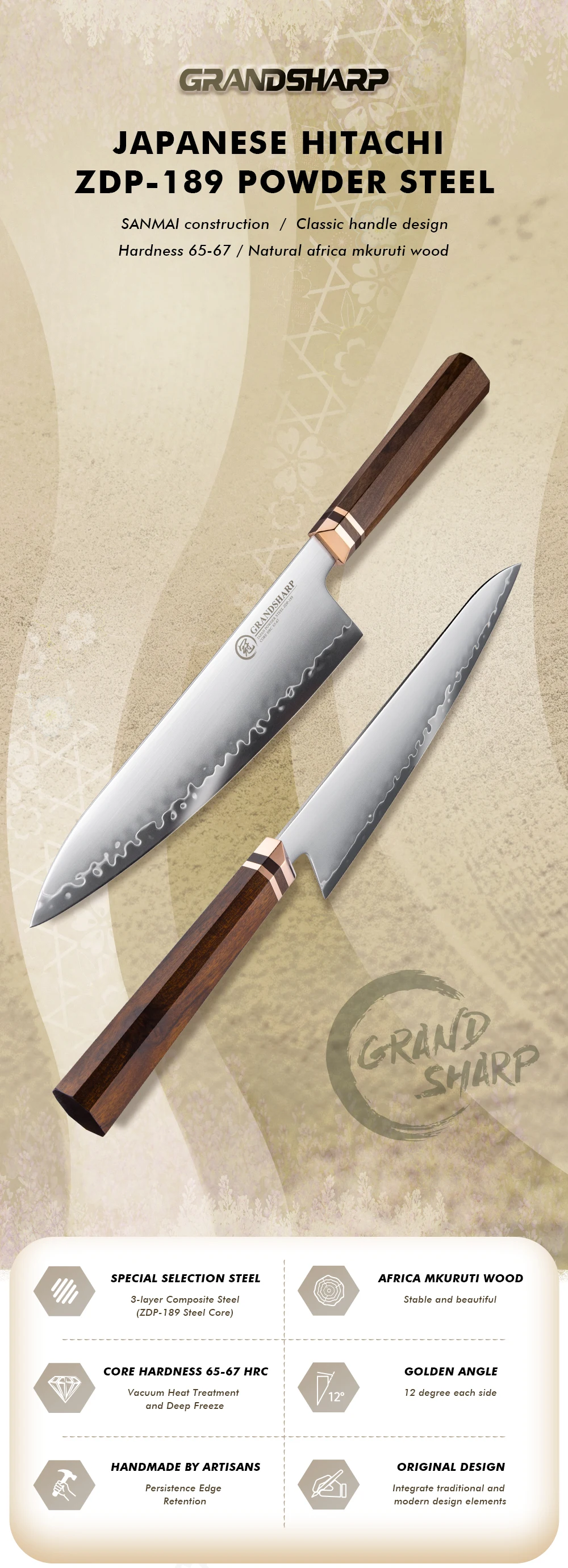 Kitchen Chef Knife Japanese Hitachi ZDP189 Powder Steel Chef Kitchen Knives with Natural Africa Mkuruti Wood Handle